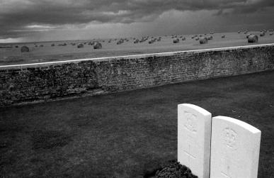 The Somme landscape as viewed from OVILLERS MILITARY CEMETERY - On 1 July 1916, the first day of the Battle of the Somme, the 8th Division attacked Ovillers and the 34th Division La Boisselle. The villages were not captured, but ground was won between them and to the south of La Boisselle. On 4 July, the 19th (Western) Division cleared La Boisselle and on 7 July Alf Razzell, 8th Battalion The Royal Fusiliers, part of the 12th (Eastern) and 25th Divisions gained part of Ovillers, the village being cleared by the 48th (South Midland) Division on 17 July. The two villages were lost during the German advance in March 1918, but they were retaken on the following 24 August by the 38th (Welsh) Division. See Alf Razzell's portrait at http://www.greatwarportraits.com/gallery